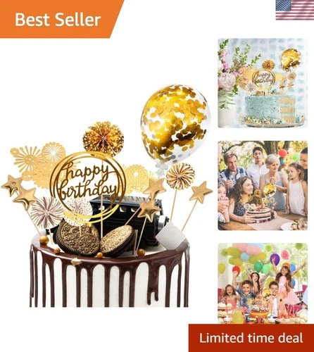 Cake Decorations 13Pcs Cake Toppers Kit Cupcake Topper with Golden Paper Fans...