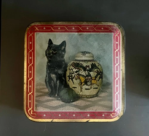 Vintage Edward Sharp & Sons Black Cat Tin Box Maidstone Kent England