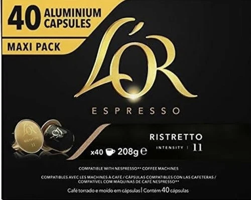 L'OR Espresso Ristretto Coffee Pods x40 Intensity 11 Pack of 1,Total 40 Capsules