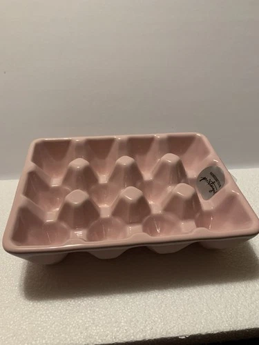 Pink Ceramic Egg Holder By Farval. Made In Portugal. Freezer/Dishwasher Safe.