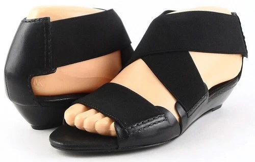 $185 BCBG MAXAZRIA TEVEN Black Elastic Strappy Designer Wedge Sandals 5.5