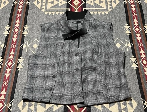 Sarah Pacini Wool Blend Sleeveless Vest Womens 3 Gray Check Italy T34