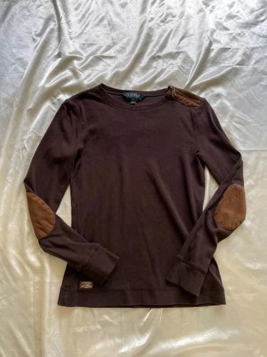 Vintage 1990s Lauren Ralph Lauren Brown Elbow Patch Shirt Small Equestrian