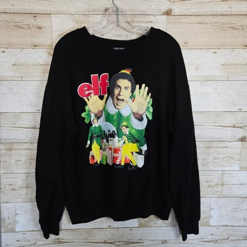 ELF Movie Christmas Sweatshirt Junior XL Comedy Fleece Will Ferrell Fleece Black