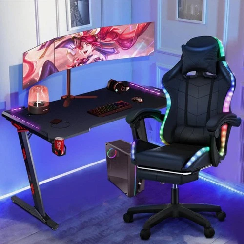 Gaming Chair Leather Office Chair Massage Computer Chairs with Lumbar Cushion UK