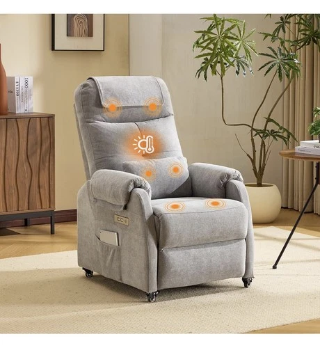 Recliner Armchair with Wheels Electric Reclining Chair with Massage & Heat