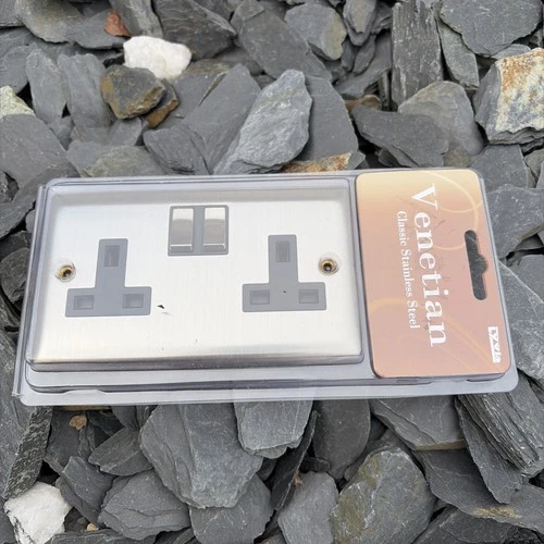 13A Socket Silver Double Wall 13 Amp 2 Gang Switched Dencon Accessories 8865BCX