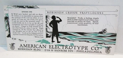 AMERICAN ELECTROTYPE COMPANY PHILADELPHIA INK BLOTTER c. 1924 ROBINSON CRUSOE #1