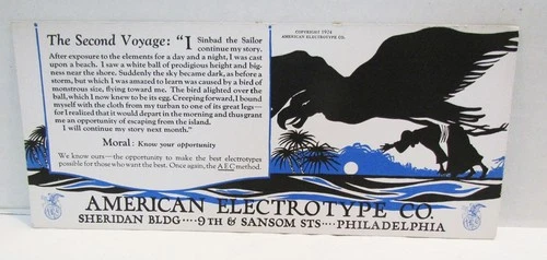 AMERICAN ELECTROTYPE COMPANY PHILADELPHIA INK BLOTTER 1924 SINBAD SECOND VOYAGE
