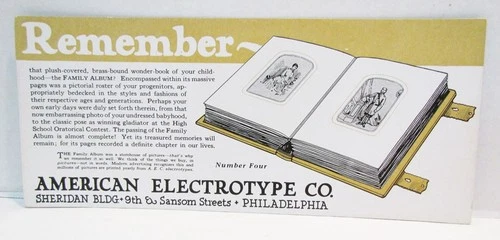 AMERICAN ELECTROTYPE COMPANY PHILADELPHIA INK BLOTTER c. 1924 FAMILY ALBUM VTG