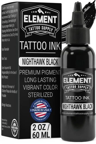 Element Tattoo Supply Nighthawk Black Tattoo Ink 2oz Super Dark Formula for L...