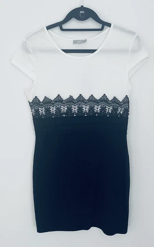 BNWT Elite 99 Women’s White & Black Colour-block Dress with Lace - Size 12
