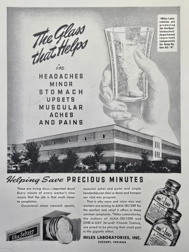 Miles Laboratories Alka-Seltzer 0ne-a-Day Elkhart IN WWII Vintage Print Ad 1943