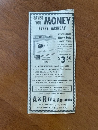 A & R T.V. & Appliances Westinghouse 1964 Newspaper Ad Clipping Elkhart IN