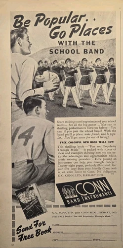 Conn Band Instruments Elkhart IN Be Popular Go Places Vintage Print Ad 1945