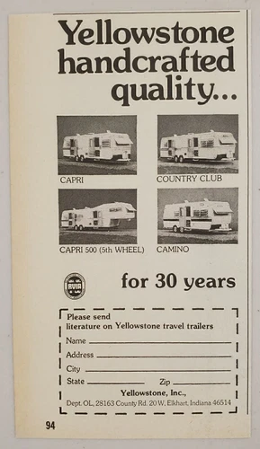 1976 Print Ad Yellowstone Travel Trailers 4 Models Shown Elkhart,Indiana
