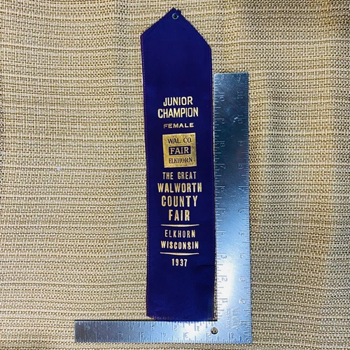 Vintage Silk 1937 Wisconsin Walworth Country Fair Elkhorn Jr. Champion Female