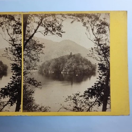 Perth Stereoview C1870 Real Photo Scotland Loch Katrine Ellens Isle By Wilson