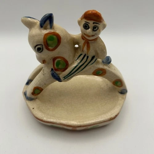 Vintage Porcelain Trinket Dish Jockey Riding Horse Made in Japan