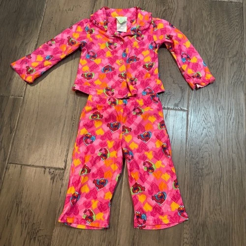 Sesame Street Elmo Pajamas Set 12M Infant Girl Pink Hearts Long Sleeve