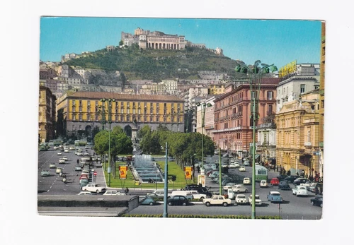 Italy Vintage Postcard Napoli Town-Hall Square & S. Elmo Castle