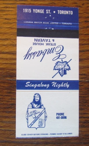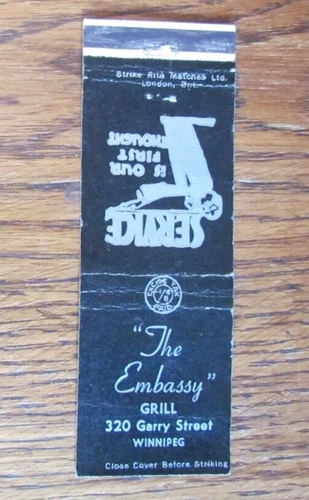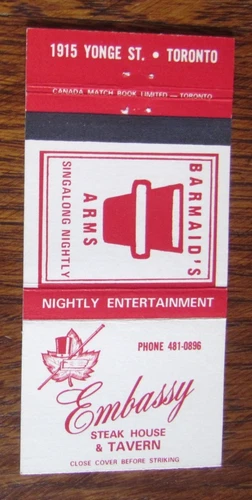 TORONTO, ONTARIO MATCHBOOK COVER: EMBASSY STEAKHOUSE RESTAURANT MATCHCOVER -A
