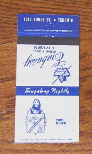 TORONTO, ONTARIO MATCHBOOK COVER: EMBASSY TAVERN & STEAKHOUSE EMPTY MATCHCOVER A