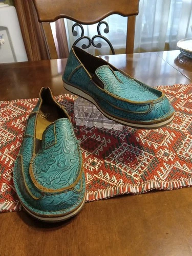 Ariat Cruiser Brushed Turquoise Floral Emboss Slip-On Shoes Women's Size 9 Rodeo