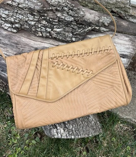 Vintage Sharif Leather Clutch Shoulder Bag USA Embossed Boho Crossbody Tan