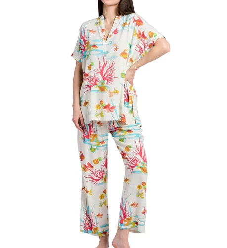 N by Natori XC6049 Oceans Embrace Printed Challis Mandarin PJ Set