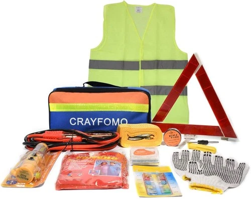 TourKing 12 Piece Car Emergency Tool Kit with Tow Rope, Safety Hammer, Vest