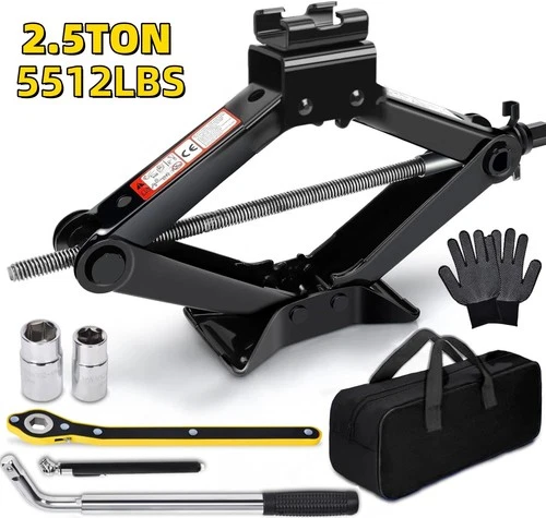 Car Scissor Jack Kit 2.5 Ton 5511lbs Tire Change Emergency Tool.