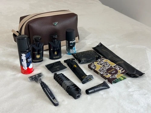 Empty Bvlgari Emirates Airlines First Class Grey Leather Style Medium Washbag