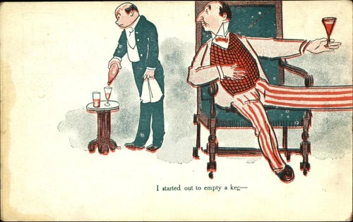 I STARTED OUT TO EMPTY A KEG men alcohol comic c1905 UDB postcard