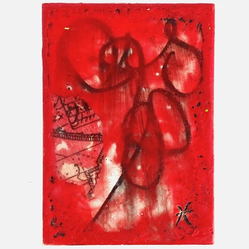 ACEO Whispers Path Original Red Encaustic Wax Art Painting by Tristina Elmes ATC