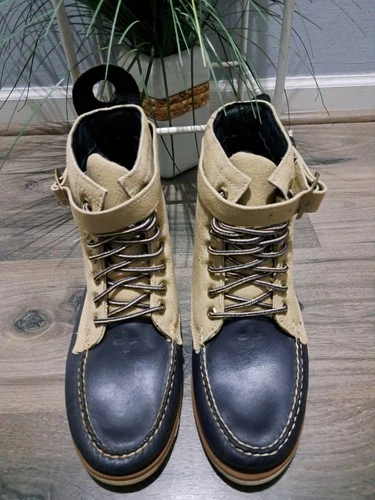 PSYBERIA Endura Vibram Boots Canvas Outdoor Hiking Tan Blue Sz 9 mens