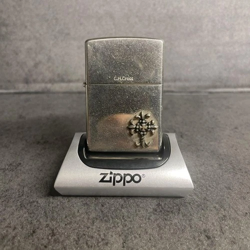 Zippo lighter with 3D cross design, C.H.CROSS engraving, manufactured in 2000