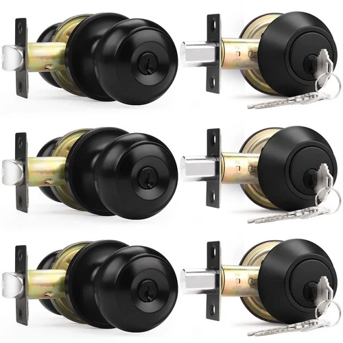 Probrico Entry Door Knob Lock Set and Double Cylinder Deadbolt Combination Se...