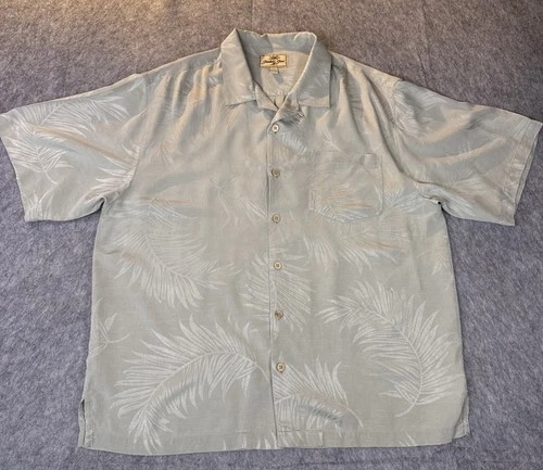 Jamaica Jaxx Silk Shirt Mens L Silk Camp Cuban Green Leaf Jacquard EPOC