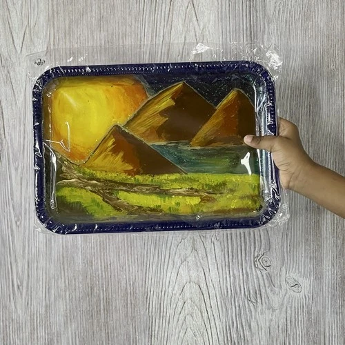 Hand-Painted Acrylic & Epoxy Rolling Tray - Custom Pyramid Landscape - New