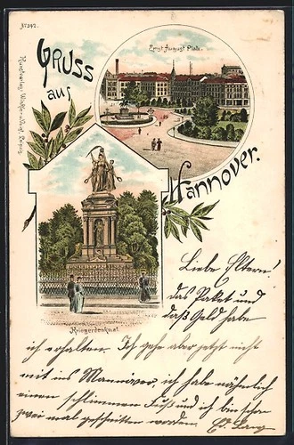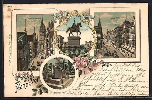 Postcard Hanover, Ernst August monument, court theatre, horseshoe and lucky clover 1900