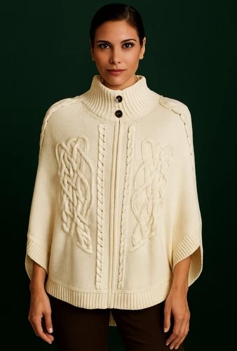 Escada Medium Cream Wool /Cashmere Poncho Cape Sweater Celtic Cable Knit Luxury