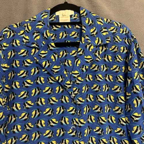 VTG Escada Margaretha Ley 100% Silk Fish Novelty Print Blouse Womens Size 38 (M)