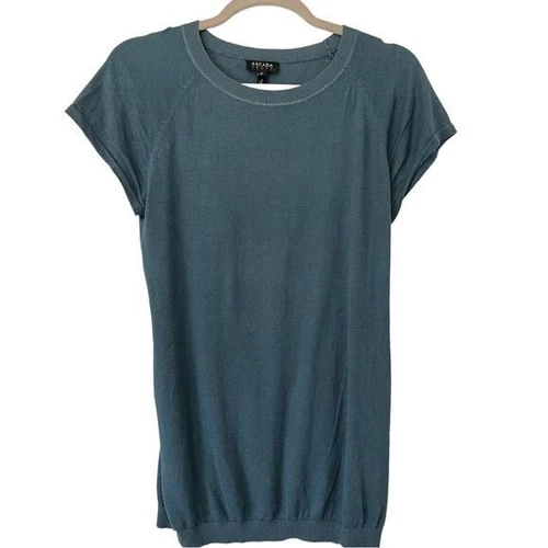 ESCADA SPORT Teal Blue Short Sleeve Knit Top Back Tie Size SMALL