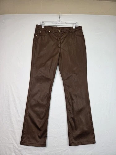 Escada Brown Coated Jeans Pants Size 42 EU US 10 Slim Straight Made in Italy