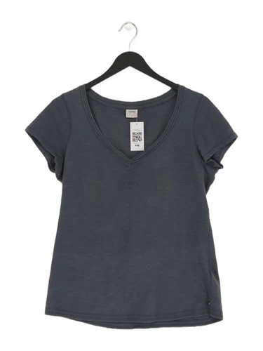 Esprit Women's T-Shirt L Grey 100% Cotton Short Sleeve V-Neck Basic