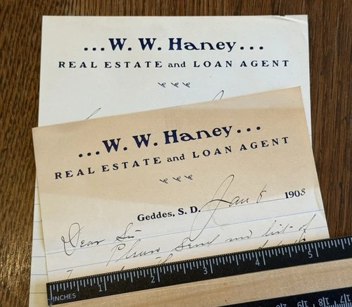 2) 1903 WW HANEY Real Estate & Loan Agent Letterhead GEDDES SD
