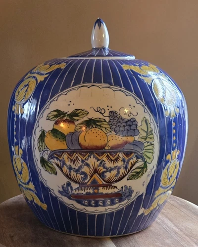 Chinese Asian Porcelain Fruit Bowl Design Ginger Jar With Lid 7.5"