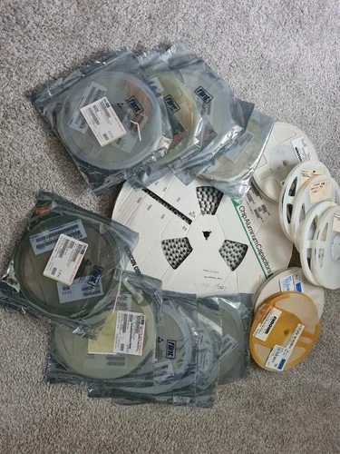 Approximatly 60,000 parts. 17 Assorted Reels of Caps, Res and semiconductors