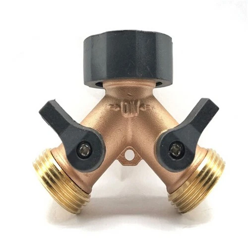 Garden Water Pipe Splitter Brass Dual-Outlet Faucet Adapter 2 Way Y Connector
